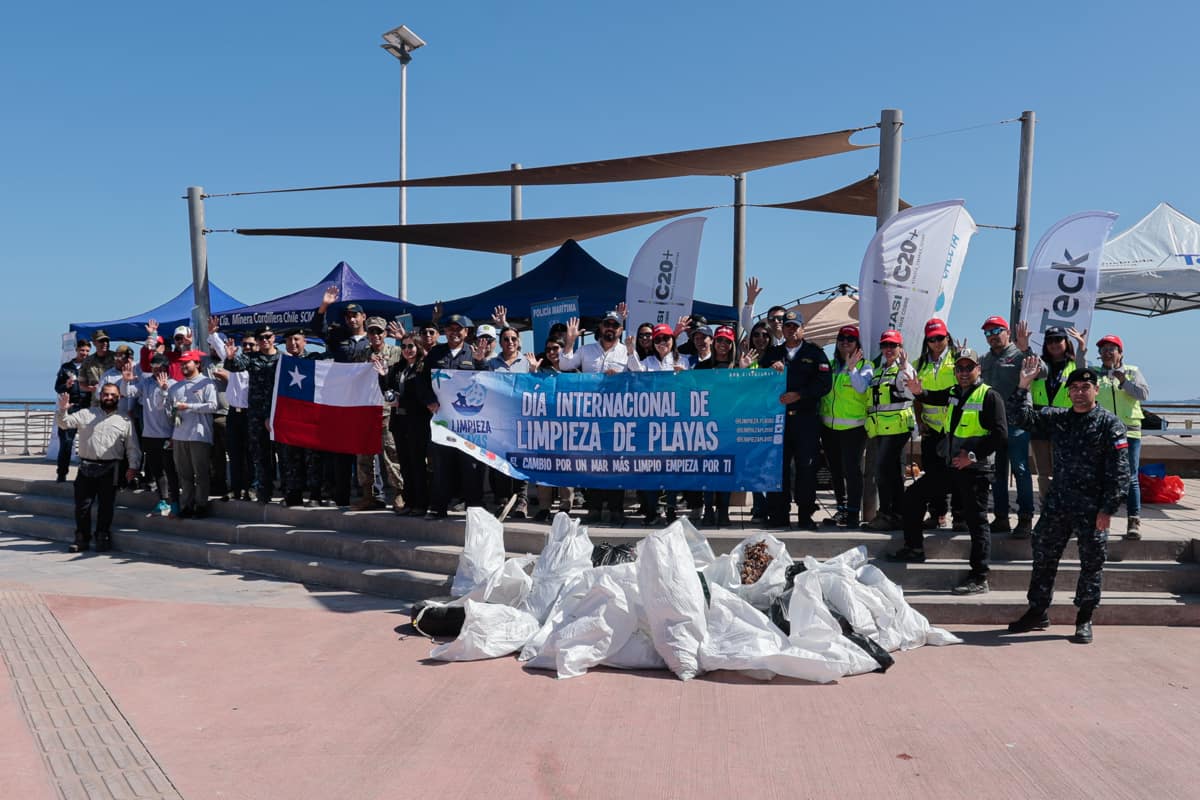 Con motivo de la conmemoración del Día Internacional de Limpieza de Playas, más de 500 kilos de residuos fueron retirados en caleta Chanavayita, gracias al trabajo conjunto entre la Armada, la comunidad y personal del Terminal Marítimo de Teck Quebrada Blanca.